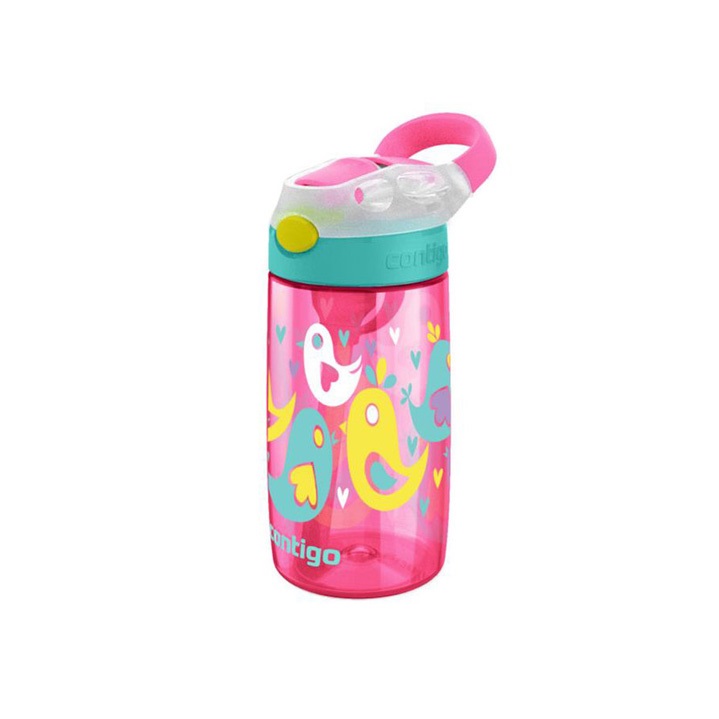 Contigo Gizmo FLIP - BPA içermeyen, 420 ml pembe renkli, aşk kuşları desenli çocuk matarası, şık görünümlü, çok kullanışlı %100 sızdırmaz ve dökülmezdir. Gizmo FLIP, % 100 sızdırmaz Autospot teknolojisi ile, çocukların hareketli geçen günleri boyunca okulda, evde, arabada güvenle kullanmaları için tasarlanmıştır.